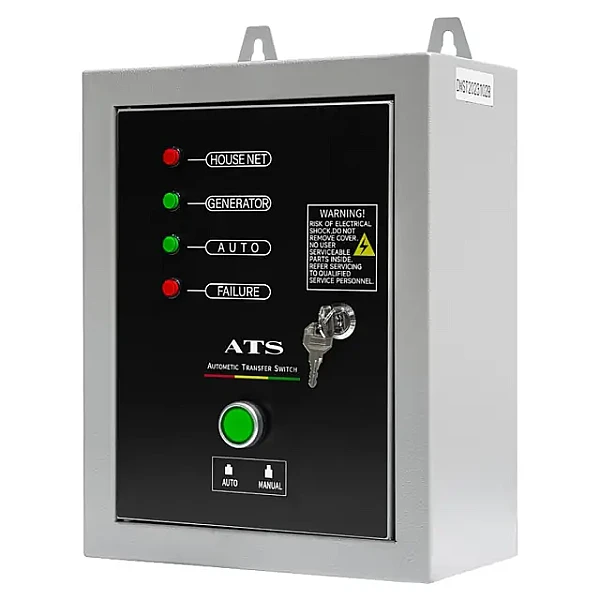 Предназначен для автоматического запуска бензинового генератора в момент пропадания основного источника электроэнергии и переключения нагрузки без вмешательства человека.