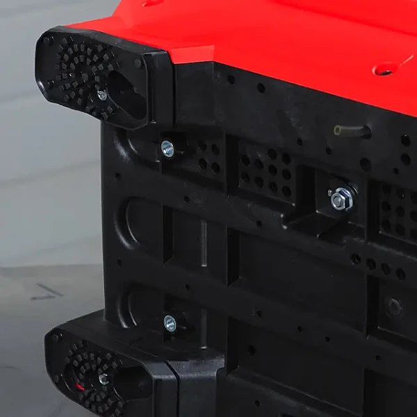 Корпус инверторной электростанции выполнен из прочного пластикового материала, который защищает рабочие узлы от внешних воздействий и снижает уровень шума. Резиновые ножки с опорными амортизаторами обеспечивают устойчивость и минимизируют вибрацию, что увеличивает срок службы техники. Легкий вес станции и удобная ручка позволяют легко транспортировать ее для выездов на природу или стройплощадки.