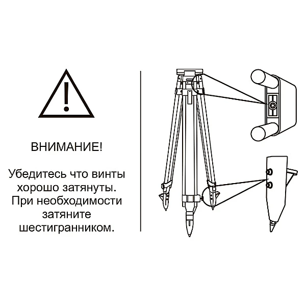 Для установки геодезических приборов деревянный штатив снабжен металлической головкой из немагнитного материала, с верхней фрезерованной поверхностью увеличенного размера и становым винтом с резьбой 5/8". Несущие конструкционные элементы раздвижных ножек выполнены из цельной древесины и защищены от негативного воздействия влаги лакокрасочным покрытием желтого цвета. Их фиксация в рабочем положении производится надежными винтовыми зажимами. Металлические наконечники ножек выполнены с упорами для вдавливания в грунт, которые для улучшения сцепления с обувью снабжены рифлением.